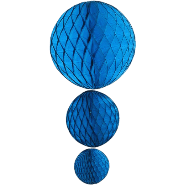 3 Pcs Hanging Honeycomb Decoration Blue Ball Includes : 1 pcs Hanging Honeycomb Ball Blue 10 cm 1 pcs Hanging Honeycomb Ball Blue 15 cm 1 pcs Hanging Honeycomb Ball Blue 30 cm