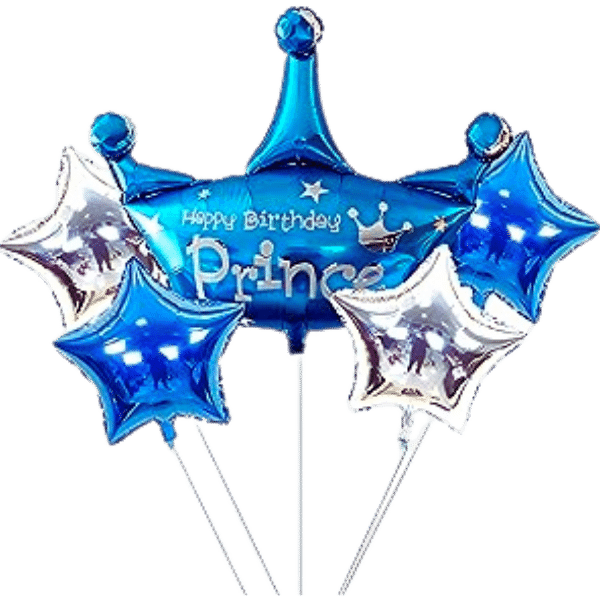 5 pcs Happy birthday prince blue theme crown Balloon bouquet