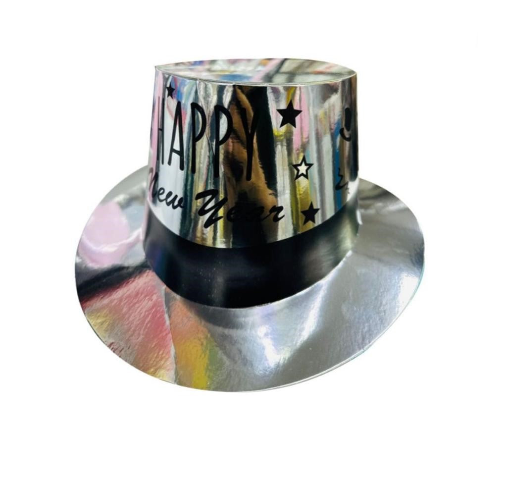 1 pc Happy New Year Metallic Silver and Black Top Hat