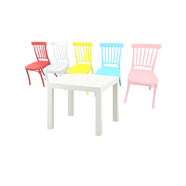 Introducing our Plastic Table & Chair Set designed specifically for kids, perfect for birthdays, play dates, and other children's events. These chairs are lightweight, stackable, and easy to clean, making them ideal for young children.