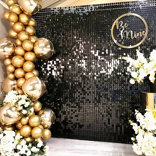Create Magical Moments: Capture stunning photos against the backdrop’s shimmering surface and create memories that will last a lifetime. Whether it’s a romantic wedding portrait, a joyful birthday snapshot, or a group photo at a bridal shower, our Sequin Wall Backdrop transforms moments into masterpieces.