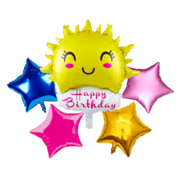 5 pcs Happy Birthday Sun and Star Bouquet Foil Balloons