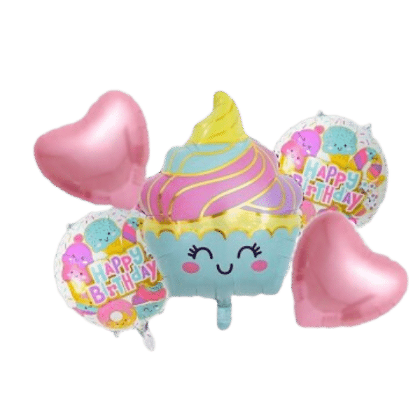 5 pcs Happy Birthday Smiley Ice Cream Balloon Bouquet
