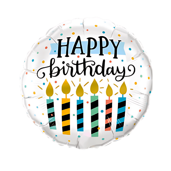 Happy Birthday Printed Candle and Small Polka Dots - Round Foil Balloon 18 inches