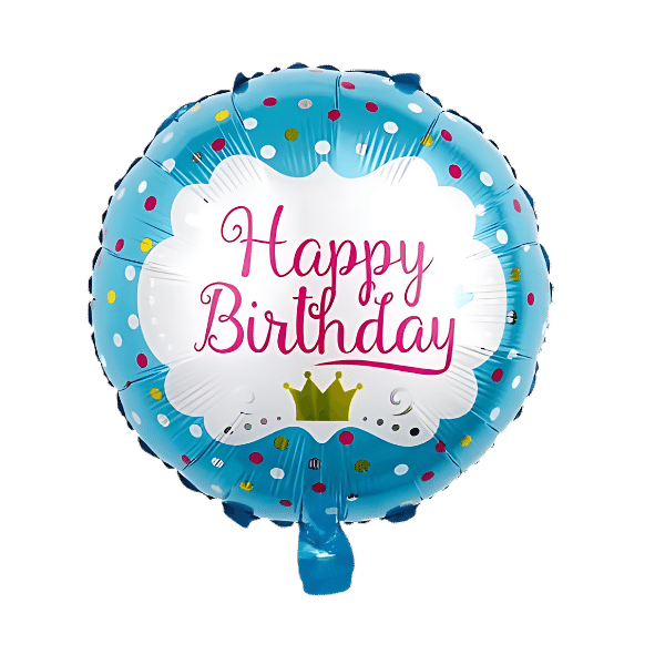 Happy Birthday Printed Small Crown and Polka Dots Round Foil Balloon 18 inches
