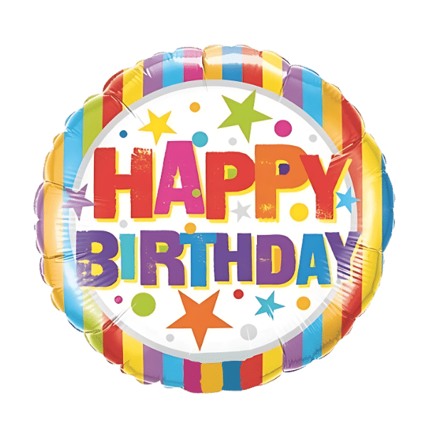 Happy Birthday with Printed Stars and Colorful Stripes Round Foil Balloon 18 inches