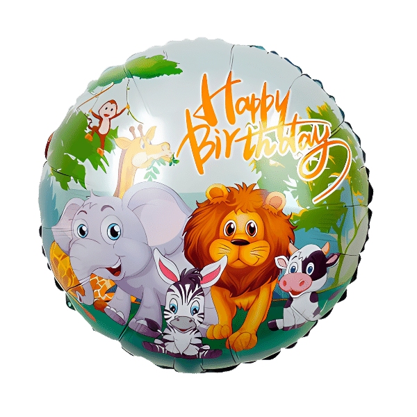 Happy Birthday Zoo Animal round foil balloon 18 inches Helium filled