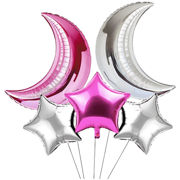 5 pcs Crescent Moon and Star Foil Balloons Bouquet
