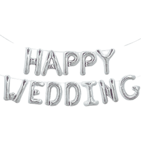 HAPPY WEDDING Silver Letter Foil Balloons Banner