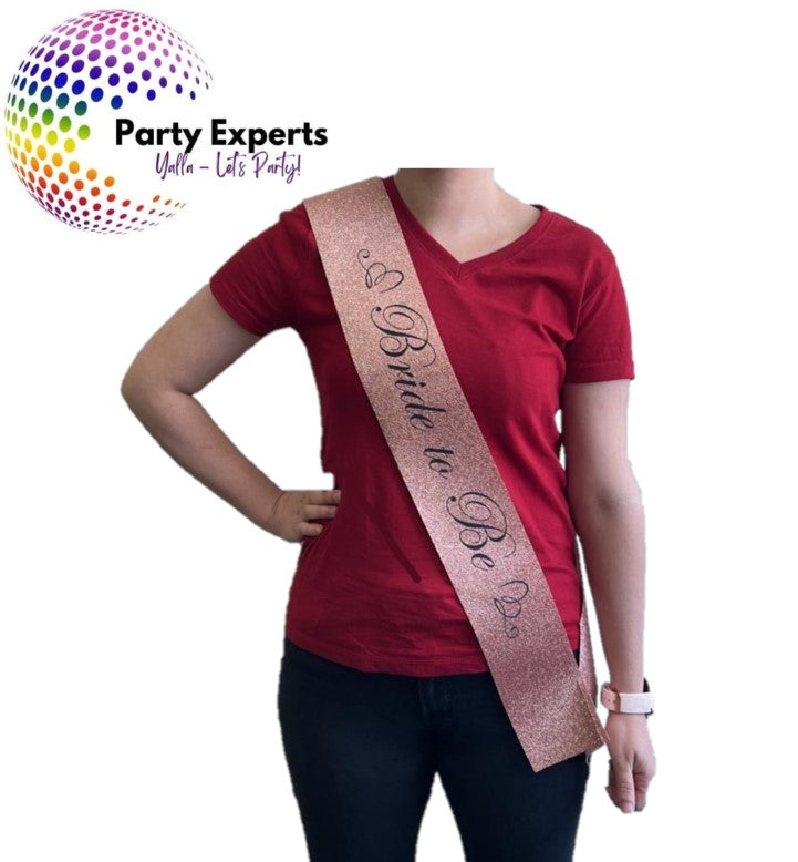 Bride To Be Glitter Rose Gold and Black Printed Sash