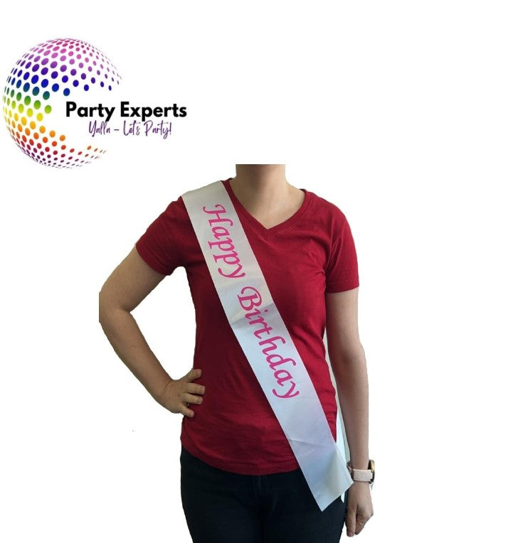 Happy Birthday White and Pink Printed Sash
