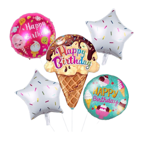 5 pcs Happy Birthday Ice Cream Balloon Bouquet
