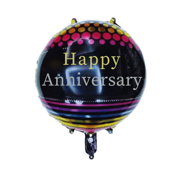 Happy Anniversary Rainbow colors -  Black Round Foil Balloon 18 Inches
